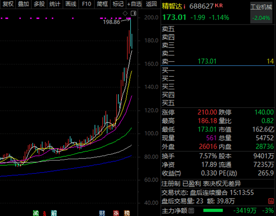 Jingzhida has the most popular memory chips and robot concepts, and its stock price has frequently hit historical highs recently, with a cumulative increase of more than 138% this year.
